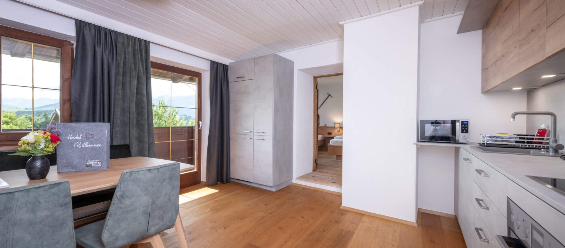 The apartment “Schwalbenwand” awaits you in new splendor. It offers a cozy bedroom for three people with cable TV, a living room with a kitchenette and dining area, and a modern bathroom with a shower and toilet. The sunny balcony invites you to relax and completes the feel-good atmosphere – ideal for a relaxing vacation in Saalfelden.